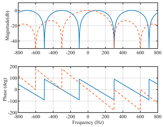 To achieve this goal, m and n, which are the parameters in MDSC, are chosen to be m = 4 and n = 8, respectively. The window length of MAF is set to be 1/300 s. The gain and phase of MDSCm=4,n=8 can be calculated by following equations.