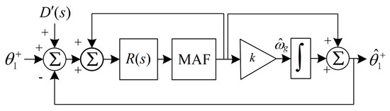 According to the derivation of Equations (9)–(14), the mathematics model of the proposed PLL is depicted in Figure 12. D’(s) is the disturbance components injected into the input voltages. R(s) is defined as follows: