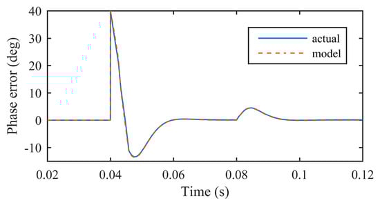 To validate the analysis above, a simulation is implemented under two conditions. The transient behaviors of phase-errors are depicted in Figure 17. This figure shows that the phase-errors of proposed PLL and its mathematics model are equal to each other during two step change in phase and frequency. The design procedure based on the mathematics model is reasonable.