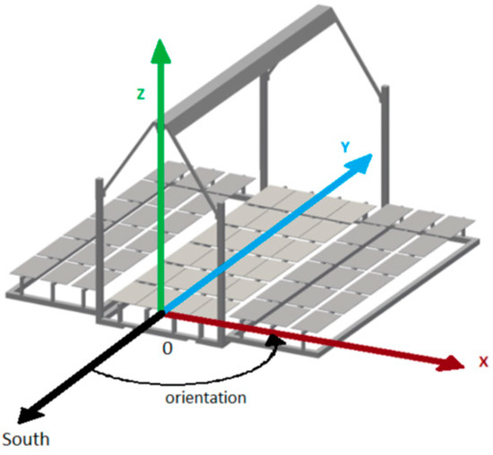 In this section, the modifications applied to the optical model by Pino et al. [37] to consider different orientations to E-O are included. Even though optical losses and non-lite pipe factor do not depend on orientation, for the determination of the shadow between rows, it is necessary to consider some additional cases. Thus, for an N-S orientation, like the one used in this work—Y axis in Figure 7—the row of mirrors are located on the left of this axis and also casts shadows on the row of mirrors on the right at certain periods of the day.