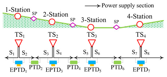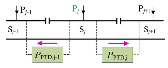 After adding the modified system, the feeder power is affected by the locomotive power and the transmission power in EPTDs and PTDs, as shown in Figure 4. Their relationship can be obtained as: