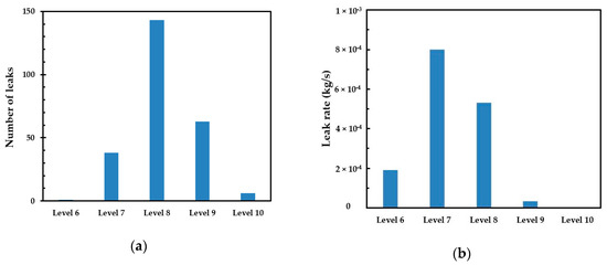 Number of leaks (a) and leak rate distribution (b) arranged according to the suggested categorization system.