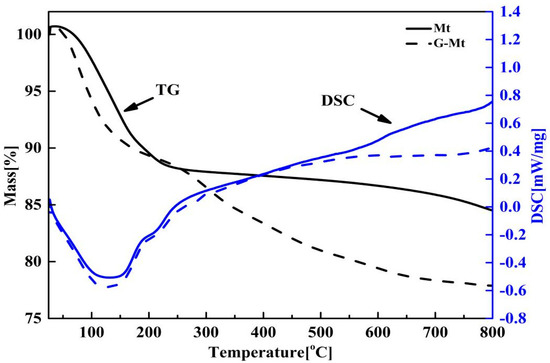 - Liu, H.; Yuan, P.; Qin, Z.; Liu, D.; Tan, D.; Zhu, J.; He, H. Thermal degradation of organicmatter in the interlayer clay–organic complex: A TG-FTIR study on a montmorillonite/12-aminolauric acid system. Appl. Clay Sci. 2013, 80, 398–406. [Google Scholar] [CrossRef]