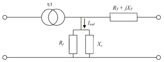 To solve the entire network in a single simulation, the MV/LV transformers are modeled as an RL network [23] as displayed in Figure 2. Transformers are added to the impedance matrix , as the link between the MV and LV network.