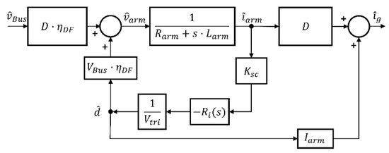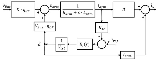 As the goal is to obtain the transfer function that relates the current that goes through the rotor iarm, the duty cycle d, and bus voltage vBus, the blocks diagram shown in Figure 20 can be considered.