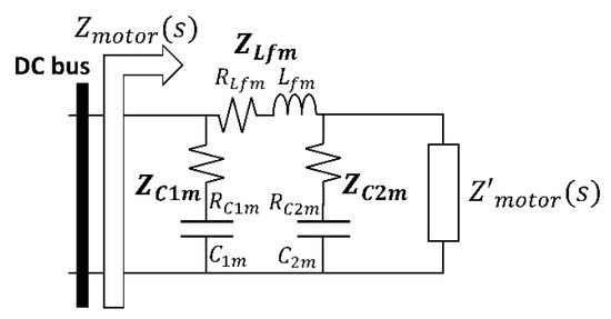 However, as the transmission of high-frequency ripples to the system must be limited, a filter is placed between the motor drive and the DC bus, as Figure 14 illustrates. Therefore, the impedance including the filter, Zmotor(s), shown in Figure 24, must be obtained.
