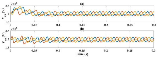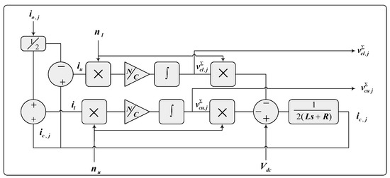 ( n u , j i , n u , j i ) = 1 means the capacitor is inserted while ( n u , j i , n u , j i ) = 0 means the capacitor is bypassed in respective arms. Equations (8)–(10) combinedly represent the internal dynamic of MMC.