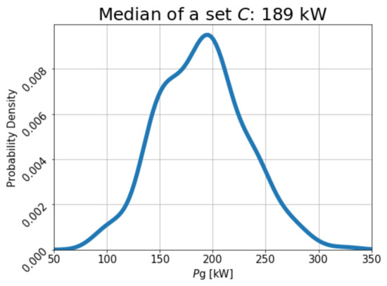 The last step in the proposed methodology for calculating the PV hosting capacity was to perform the load flow simulations using the Monte Carlo method, which enabled assessment of the PV hosting capacity. The result of the proposed method is a set C of PV hosting capacity values. Here, we utilized kernel density estimation of a set C, which is a non-parametric way to estimate the probability density function of a random variable, to plot the results in Figure 5.