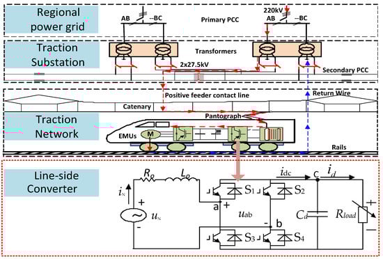 - Liu, Z.; Zhang, G.; Liao, Y. Stability research of high-speed railway EMUs and traction network cascade system considering impedance matching. IEEE Trans. Ind. Appl. 2016, 52, 4315–4326. [Google Scholar] [CrossRef]