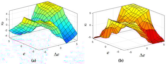 3D visualization of the fuzzy inference system: (a) Kp (b) Ki.