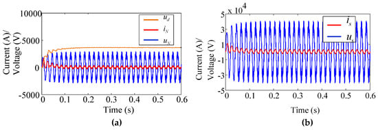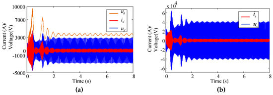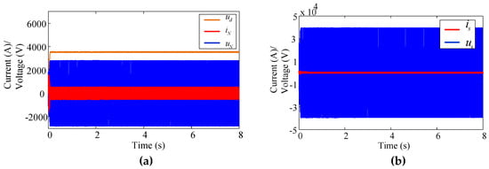 Figure 6 shows the simulation set-up of four-quadrant TLSC. An offline simulation was carried out and compared. A bipolar carrier PWM algorithm was adopted, and the switching frequency is 350 Hz. The converter parameters are listed in Table A1 as shown in the Appendix A.