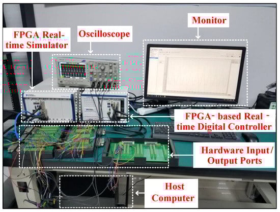 To further validate the VLFO suppression effect of the proposed method, the controller was implemented in the hardware-in-the-loop (HIL) simulation platform. The HIL simulation platform of the TPS is built, as shown in Figure 1. It consists of a NI PXle-1071 FPGA-based real-time digital simulator (FPGA-RTDS), NI PXle-1082 real-time digital controller (RTDC) with modeling tech rapid control prototyping (RCP) module, oscilloscope, external host computer, hardware input/output ports, and power supply unit. The NI PXle-1071 is a rugged, rack-mountable, and a 4-slot PXI express backplane with structural designed optimized for maximum usability and flexibility in a wide range of applications, whereas NI PXle-1082 chassis combined a high-performance 8-slot PXI express backplane with high-output power supply, it also ensures a high level of maintainability, resulting in a meager mean time to repair (MTTR). The NI PXle-1082 chassis fully complies with the OXI-5 PXI express hardware specification, offering advanced timing and synchronization features.
