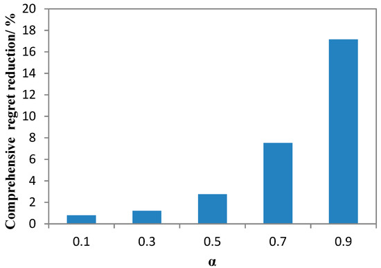 where is the comprehensive regret value; and is the weight coefficient of the minimum–maximum regret aversion objective and the minimum average regret objective, and . When is taken as 1, Equation (30) is equivalent to Equation (29).