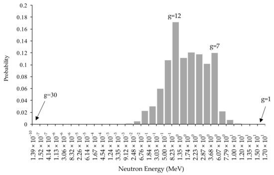 - Conlin, J.L.; Parsons, D.K.; Gardiner, S.J.; Gray, M.G.; Lee, M.B.; White, M.C. MENDF71X: Multigroup Neutron Cross-Section Data Tables Based upon ENDF/B-VII.1X; LA-UR-15-29571 (7 October 2013); Los Alamos National Laboratories: Los Alamos, NM, USA. [CrossRef]