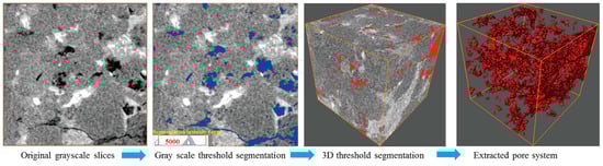 Figure 3. The processing method of threshold grayscale segmentation on X-ray computed tomography (X-CT) scanning results.