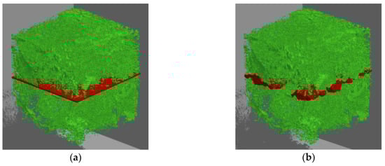 Digital cores of tight sandstones with smooth fracture (a) and with rough fracture (b).