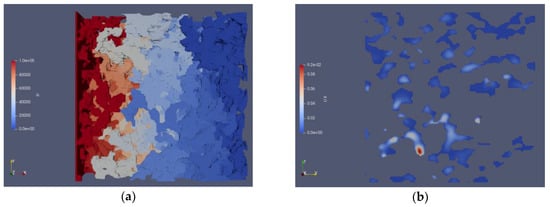 One method is to simulate with the digital core directly, as shown in Figure 3. We use the semi-implicit method for pressure-linked equations (SIMPLE) algorithm [33] to calculate the velocity field on the 3D finite volume open-source platform OpenFOAM® (version 6, OpenFOAM Foundation Ltd., London, United Kingdom) and calculate the absolute permeability. Because the fluid is regarded as an incompressible Newtonian fluid, the continuity and momentum equation [34,35,36,37] are as shown in Equations (12) and (13) respectively. The solver employs the SIMPLE algorithm to solve the equations.
