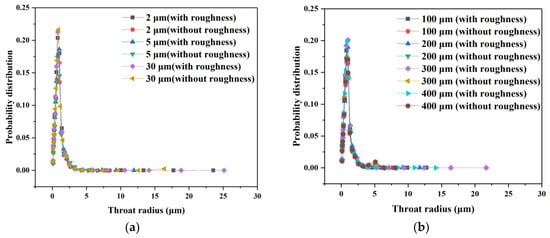Throat radius distribution with different fracture apertures (a) and lengths (b).