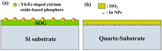 Schematic diagram of the test sample with (a) up-conversion (UC) layer and (b) SiO2 layer with embedded indium nanoparticles (In NPs).