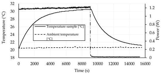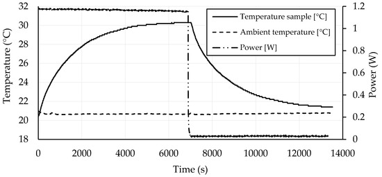 Thermal properties were determined on samples with dimensions 70 × 70 × 70 mm3 by a commercial device ISOMET 2114 (Applied Precision, Ltd.) attached by a surface probe by means of the transient heat-pulse method. Such measurements were based on an analysis of the temperature response to the generated heat flow pulses. Heat flow was induced by electric heating using a resistor heater placed in the probe having direct thermal contact with the surface of the sample. First, the probe was heated up, and, subsequently, temperature decrease was monitored after the heater was turned off. With the known geometry of the probe and a decrease of the temperature due to dissipation of the heat in the sample, thermal properties were identified.