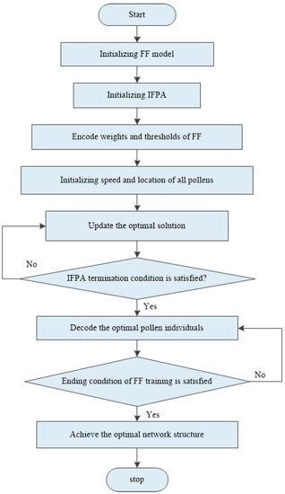 As above, FF may suffer from a weak global search ability, i.e., liable to be trapped into a local minimum. To solve this problem, some algorithms such as extreme learning machines, support vector machines, particle swarms and genetic algorithms are usually used to improve FF [24,25]. In this study, the improved flower pollination algorithm (IFPA) is developed to optimize the FF neural network.