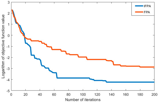 - A random value of rand is generated and compared with the conversion probability p. According to Equations (5) and (7) in FPA, the solution is kept being updated until the global optimal solution is reached.