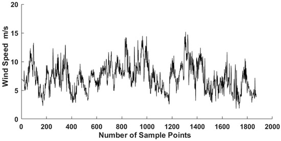 The data used in this study comes from the Sotavento wind farm in Galicia, Spain, and it is taken from 1 March to 13 March 2018. The wind speed statistics data is shown in Table 5. Sampling interval of wind speed data was 10 min, as shown in Figure 8.