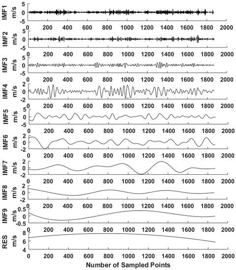 - Finally, is decomposed into k IMFs with different oscillation modes, as shown in Equation (14).