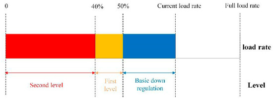 Firstly, the maximum down-regulation of the CHP plant during this period is divided into three levels of –50% , 50%–40% , and < 40% according to the basic down-regulation, first-level down-regulation, and second-level down-regulation. The down-regulation of each level is: