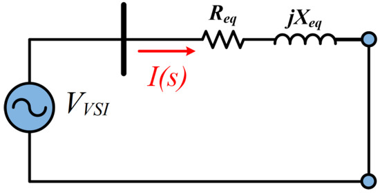 For the analysis of the control loop, the transformer is analyzed as follows. Considering Figure 5, from the controlled series voltage source viewpoint, the grid voltage is zero. The controlled voltage source imposes currents that flow in a closed loop through transformers, with only equivalent series resistance and reactance, as shown in Figure 7.