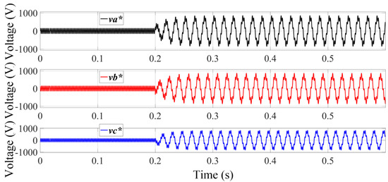 Figure 19 shows the reference voltages , , and , added the reference harmonic voltages , , and .
