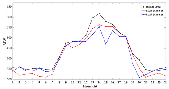 APLF is defined as the ratio between the average load and the peak load in the same period. It represents the variability of the load, so that the higher the value of APLF, the greater the peak load shaving. If DR successfully curtails the load in the peak period, then APLFW will increase and PLSF will improve accordingly. The higher the value of PLSF, the greater the enhancement of the system reliability during the peak period.