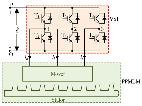 The studied PPMLM is fed by a two-level VSI, which is illustrated in Figure 2. The VSI consists of six power switches. The switch state sx of xth leg is defined as: