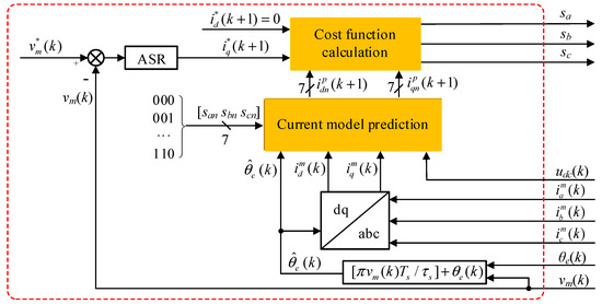 where is the reference q-axis current. According to the difference between the reference speed and the actual value , can be obtained from the automatic speed regulator (ASR). is the reference d-axis current, which is set as 0. The optimal VV Uop is selected to minimize Jn: