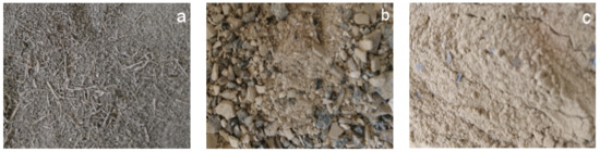 Figure 2. Biomass waste samples from bioethanol processes. (a) Press mud; (b) powder vinasses; (c) extraction sludge.