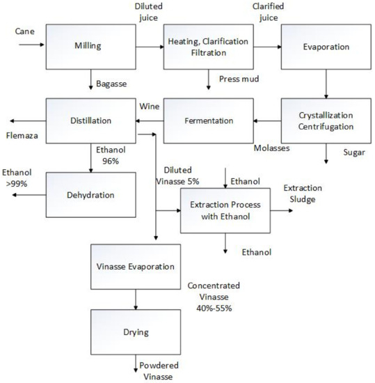 Figure 3 shows the sugar and bio-ethanol process block diagram, including the vinasse powder and the vinasse sludge production sections.