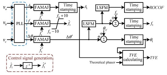 Many non-DFT-based PSMAs, such as level crossing [18], Kalman filtering [19,20], Newton algorithm [21], adaptive neural network [22], least squares [23,24,25], wavelet [26,27], Taylor algorithm [28,29], and subspace algorithm [30], have been proposed in the literature. However, these methods usually have some disadvantages that limit their applications in synchrophasor measurement situations. For example, the presented methods usually have limited disturbance rejection capability and their measurement accuracy may be unsatisfactory under some conditions, for example, under harmonic condition wherein the power grid frequency deviates from the nominal frequency. Moreover, the presented methods usually have a tradeoff between the dynamic response and steady state accuracy. The improvement of the measurement accuracy is generally at the expense of worse dynamic performance.