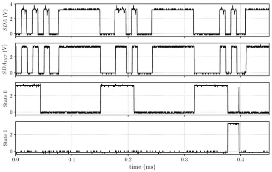 Measurement of the external and internal communication signals (SDA only) and the resulting effect on the switch’s state machine.