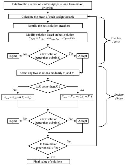 Flowchart of teaching–learning-based optimization (TLBO) technique.