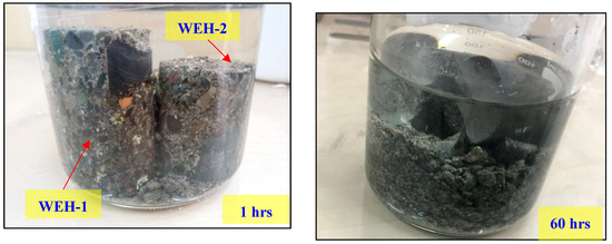 The surface change of the WEH-1 and WEH-2 samples with the soaking time.
