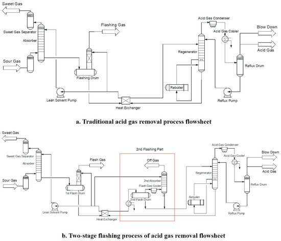 Generally, traditional acid gas removal process includes three main steps, absorption, hydrocarbon flash and regeneration [15] units, which are shown in Figure 1a.