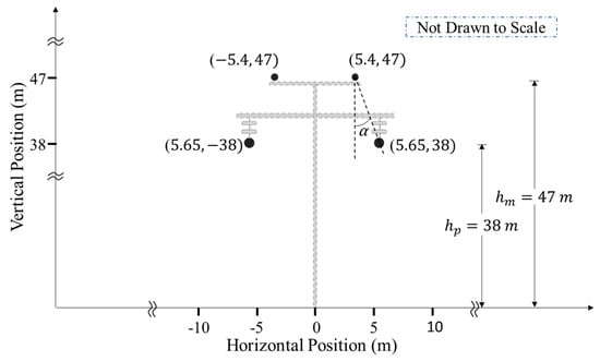 Cross arms and braces retard the wave propagation on the tower. Therefore, the wave velocity of the vertical tower section is 85% of the speed of light [22]. The characteristic impedance of the waisted tower structure, shown in Figure 2, is calculated using Equation (1) [23].