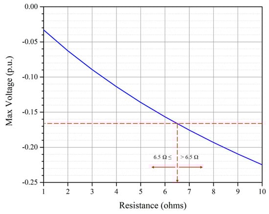 The SG overvoltage at the terminal of the sheath according to the sheath grounding impedance is shown in Figure 21. It can be seen that the maximum overvoltage can be limited to the desired protective level if the sheath grounding impedance is limited up to 6.5 Ω.
