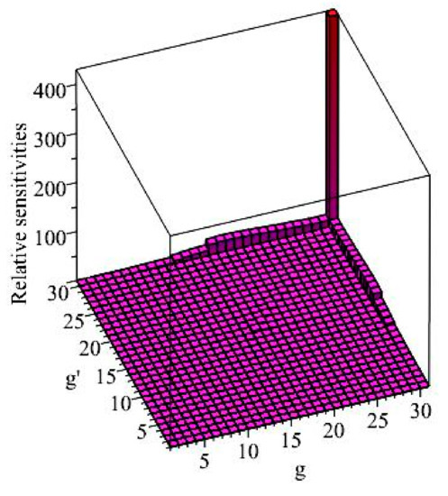 - As shown in Table 9, the 2nd-LASS-computed unmixed 2nd-order relative sensitivity for the 30th group of isotope C has the value of 3.016; the value of the corresponding absolute sensitivity computed while using the central-difference method is 2.179357 × 105, which yields the relative sensitivity value ; the two values show good agreement with each other.