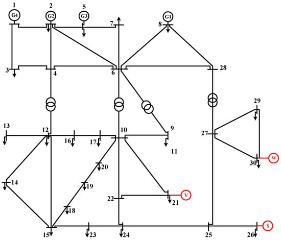 In network normal operation, the traditional Newton-Raphson load flow algorithm can be used to calculate the expected value of the node state variable operating at the reference point, the expected value of the branch current and the Jacobian matrix , to further obtain the sensitivity matrix and .