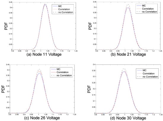 - By considering the correlation between DGs and EVs, calculation results are accurate and the other nodes that are without DG or EV integration are influenced little. The inclusion of the spatial correlation coefficient matrix renders greater accuracy.