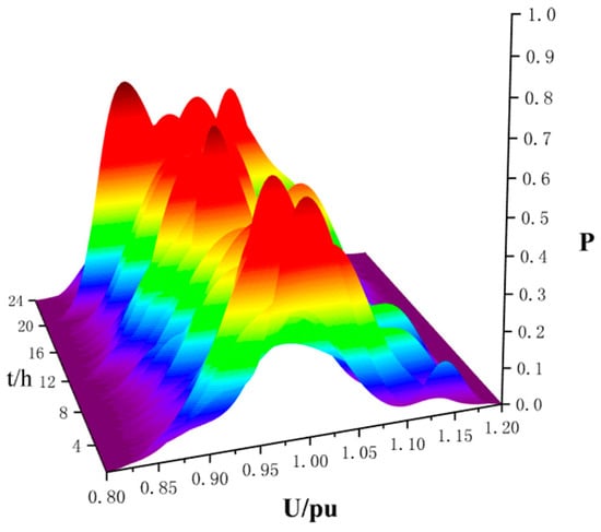 Finally, the PDF of the node voltage and power is obtained from the CDF. Specifically, it is expressed as the probability of each voltage and power value at a certain moment of a certain node and the maximum value of voltage and power probability at all times of a certain node on a certain day.