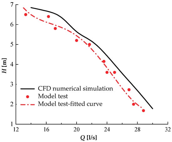 1. The initial model test was carried out to verify the accuracy of numerical simulation. The results show that the CFD results are consistent with the results of model test. The efficiency and pumping head had a minimum error range of ±5%. The major reasons for the recorded deviations are associated with the used computational grid characteristics and numerical turbulence model, as well as neglection of the mechanical transmission efficiency in CFD. The final selection of optimal rotating speed as 350 r/min is based on the numerical simulation method’s results.