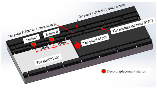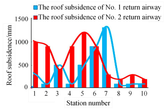 | Fourth | large-scale instability of deep roof | Φ21.6 × 8000 mm anchor | 2 anchors m | when excavating |