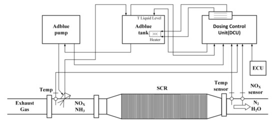 - Bonfils, A.; Creff, Y.; Lepreux, O.; Petit, N. Closed-loop controlof a SCR system using a NOx sensor cross-sensitive to NH3. J. Process Control 2014, 24, 368–378. [Google Scholar] [CrossRef]